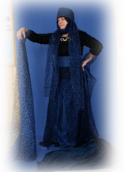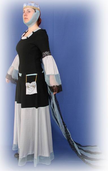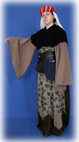 šaty, opasek, kapuce, čepec